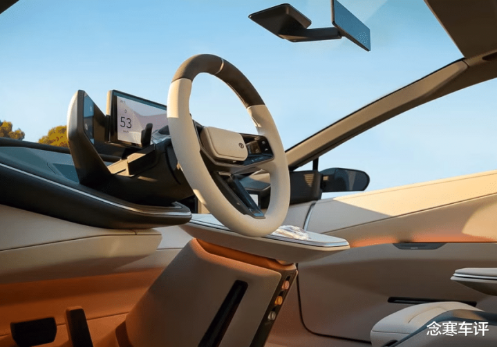 不过别高兴太早,它把仪表盘和方向盘搞成了一体式。这我就看不懂了。方向盘是转动的,屏幕跟着转?那我过弯的时候看时速,还得歪着脖子?还是说屏幕是静止的,只有盘圈在转?
